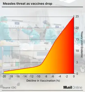 Public health experts warn that declining vaccination rates and the resurgence of measles have created conditions for outbreaks, particularly in communities with lower immunization coverage.