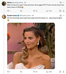 Another added, ‘Andy Cohen drunk af on CNN while Anderson Cooper tries to stay out of the frame is gold.’