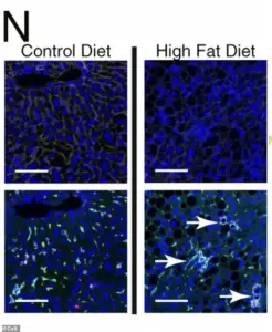 Under a microscope, the liver cells of mice fed a high-fat diet reveal a haunting transformation.