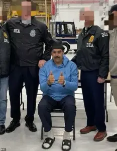 The images, captured during a federal operation involving the Drug Enforcement Administration (DEA), depict Maduro in handcuffs, flanked by agents, and posing for the camera.