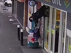 The footage, shot by CCTV cameras, shows Anne standing outside the shop in March 2024, her winter coat snagged in the roller shutter.