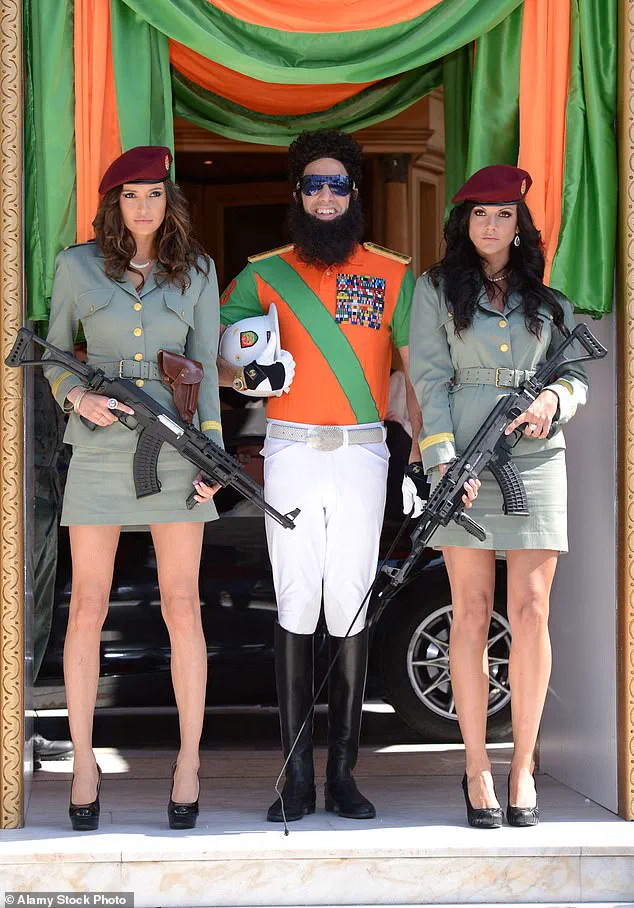 Dressed in a red beret, khaki jacket, and miniskirt, she posed as one of the ‘virgin guards’ for Baron Cohen’s character, Haffaz Aladeen, a role that cemented her place in the spotlight.