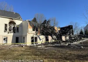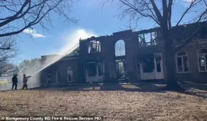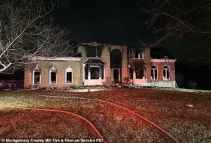 A once-luxurious mansion in Montgomery County, Maryland, was reduced to smoldering ruins in a fire that authorities believe originated from a seemingly mundane source: a heat lamp in a chicken coop.