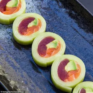 It’s also rich in selenium, a powerful antioxidant, and vitamin B6, which is great for energy production.’ For individuals managing blood sugar or following a low-carb diet, the tuna naruto roll offers a satisfying alternative to nigiri, which relies heavily on rice.