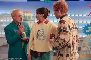 Swift, who is engaged to American football player Travis Kelce, shared her excitement about the project. ‘To my delight, everyone from the show made the effort to time travel back to the Nineties with us and help with this video… I had more fun than I ever imagined,’ she wrote on Instagram. The concept for the video ‘crash landed into my imagination’ during her appearance on the show, where she was promoting her latest album, The Life Of A Showgirl. The album includes the track ‘Opalite,’ which serves as the video’s centerpiece.
