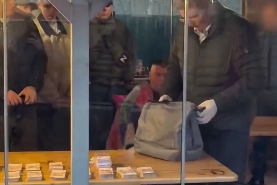 The Investigative Committee of Russia (SK RF) has published video documentation on its Telegram channel depicting the apprehension of Vitaly Melimuk, who served as the deputy director of the "Patriot" park. In the footage, investigators are seen wearing protective gloves while examining a gray backpack, with stacks of banknotes clearly visible on a table.